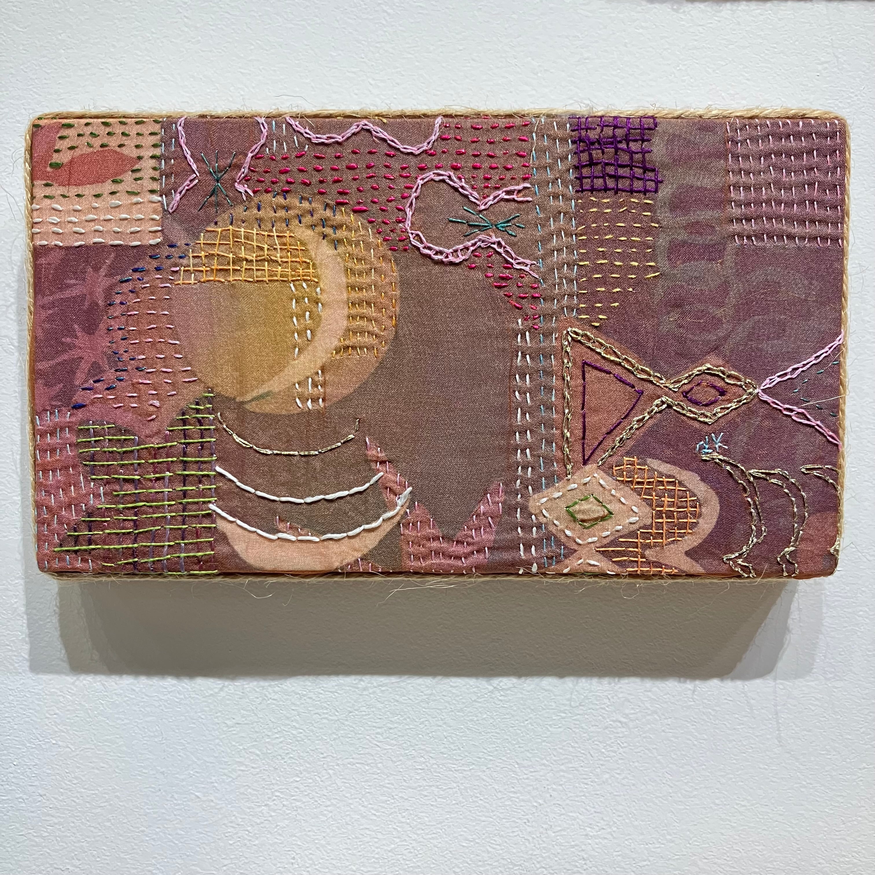 反応性染料、酸性染料、綿布、絹オーガンジー、絹糸、ラメ糸、木製パネル